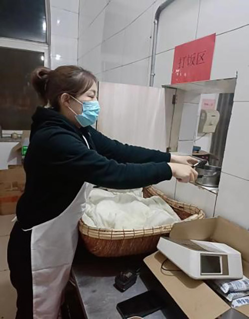以前后勤保障部每天只準備兩頓飯,而且夜班吃飯的人不算多,可現在500多人封控在單位,一天要為這些人準備三頓飯,工作量增加了兩倍多。初文一邊切著菜,一邊笑著說:“廚師大哥們和幫廚大姐們起早貪黑,咬牙堅持工作,我們不僅要讓大家吃飽還要吃好。”